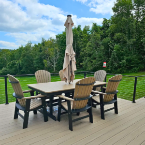 With a mountain view as beautiful as this, unrestricted sight lines are key. This customer used Express Cable Railing alongside DriveTite cable kits (which drill into wood posts), blending textures, colors, and materials to echo the surrounding landscape.