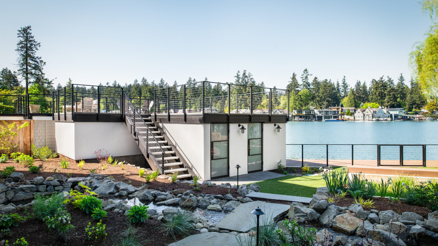 Surrounded by quintessential pacific northwestern comfort, sleek cable railing allowed these homeowners to keep their lakefront view while creating a safe place to enjoy.