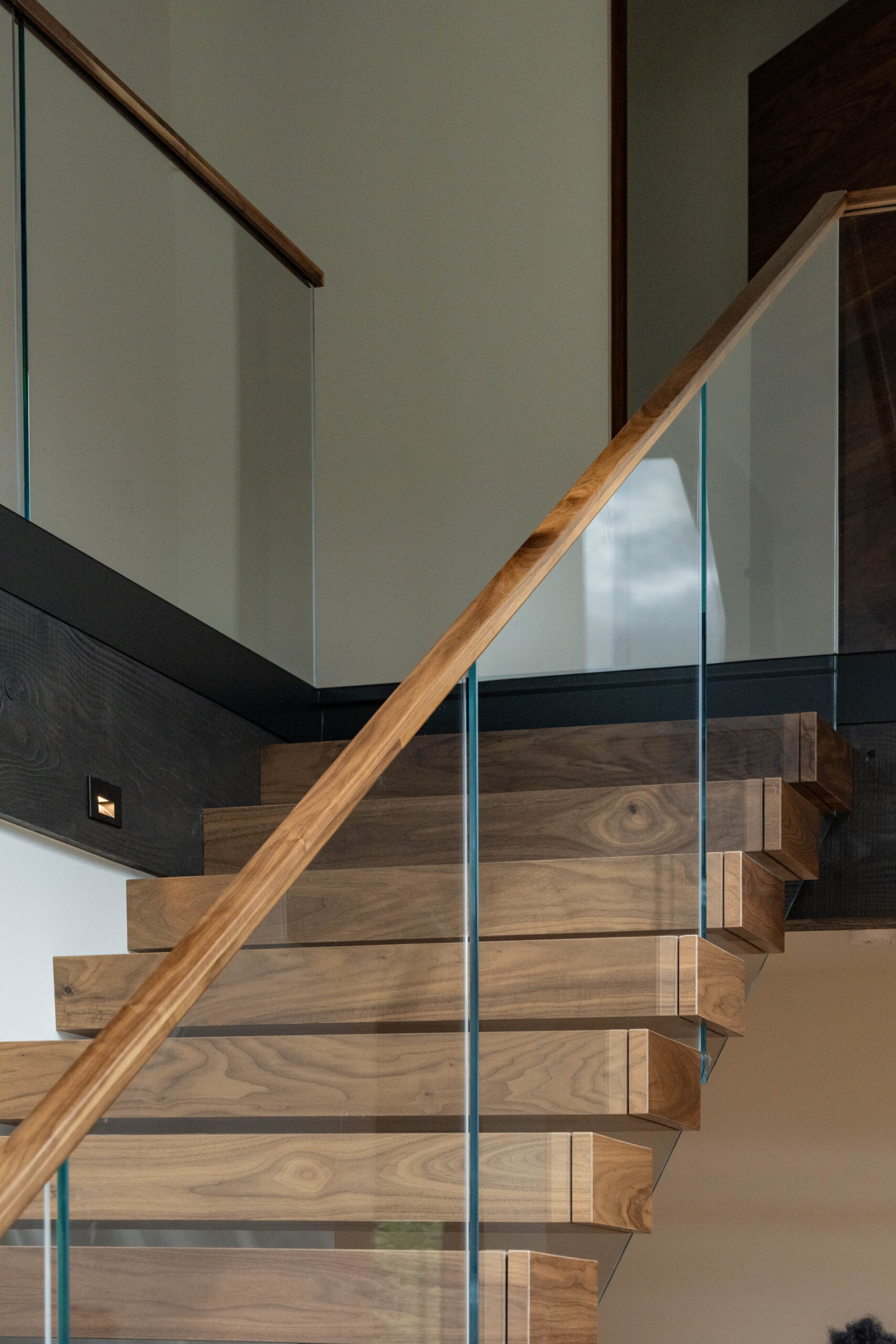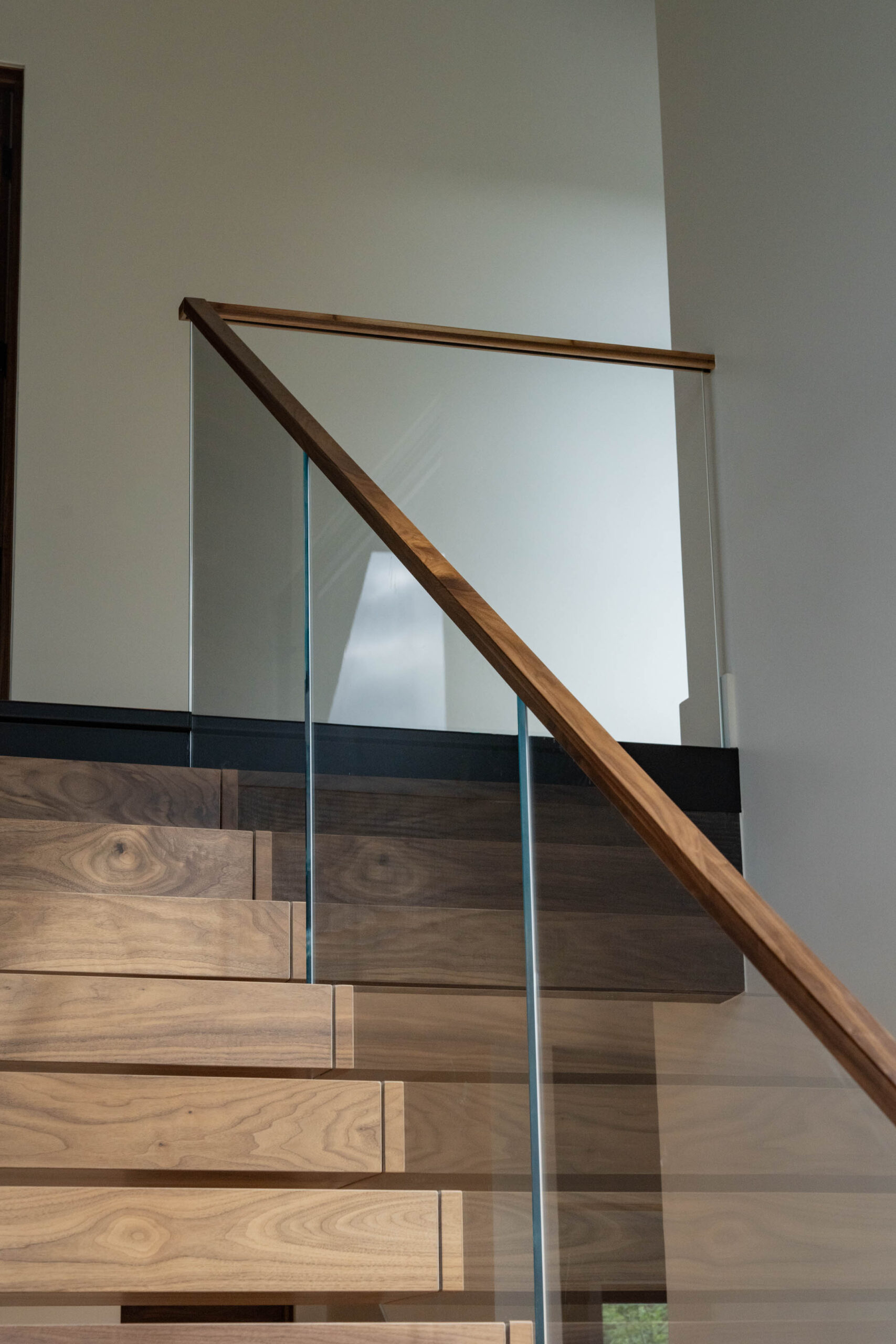 What’s a better statement piece for a new home than a pristine glass railing system? This classic, modern railing installed on the home’s pre-existing treads perfectly contrasts the home’s entire design. With the perfectly tempered, ultra-thin glass, everyone can enjoy the intricate layout from above and below.