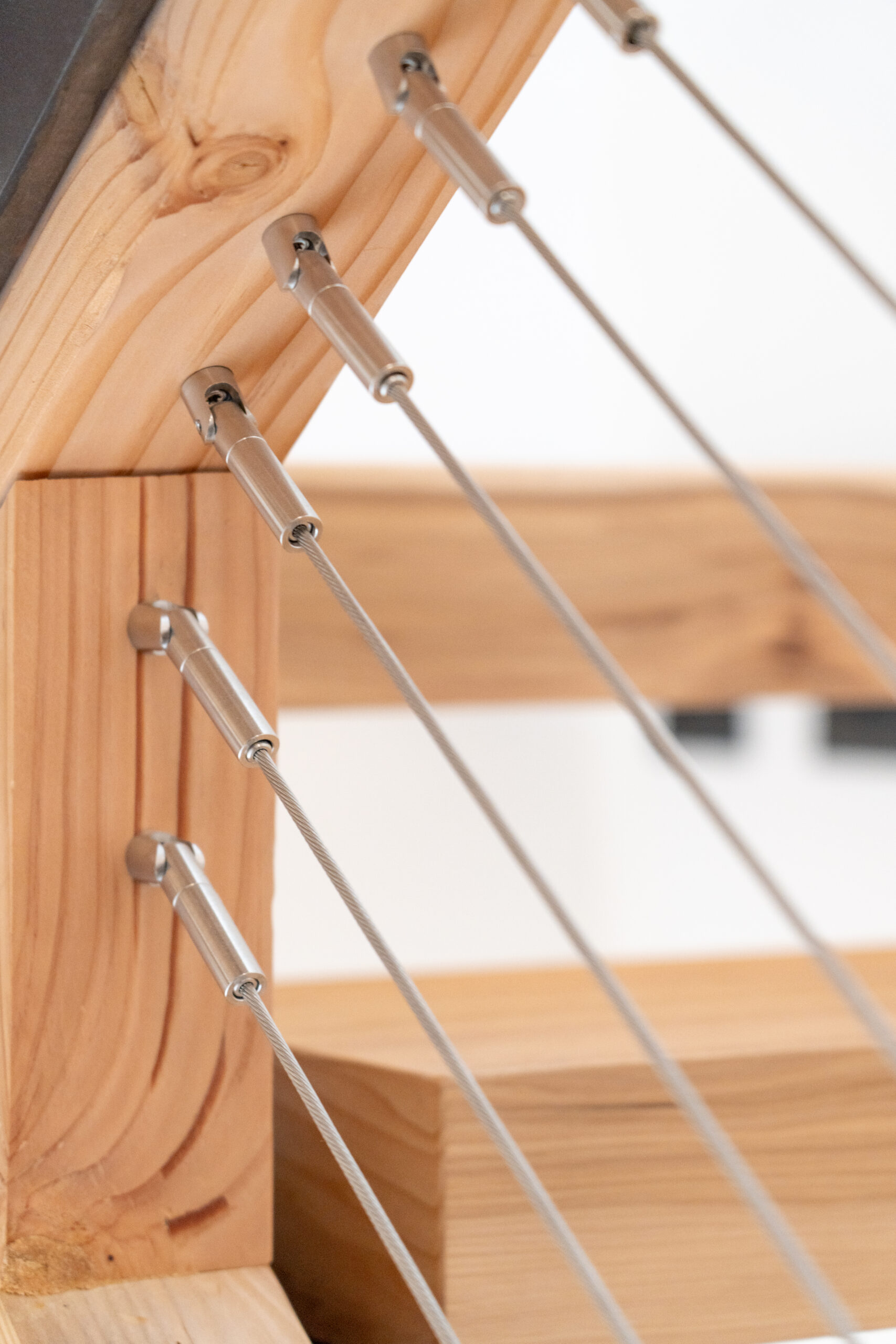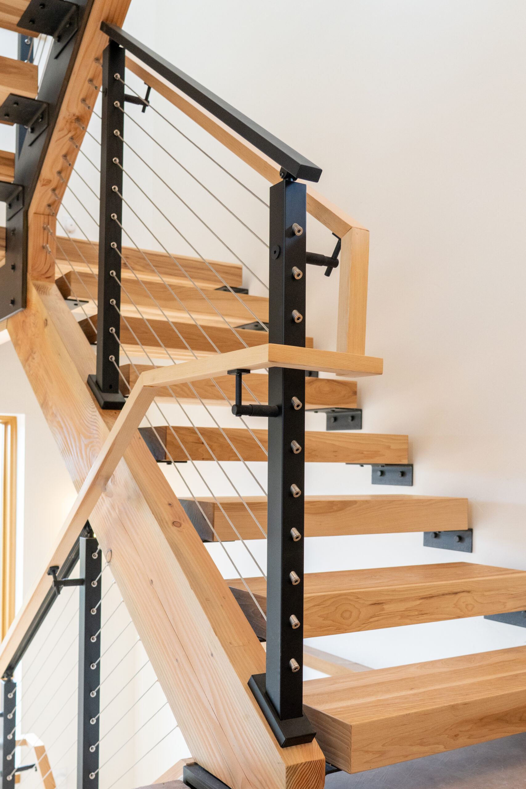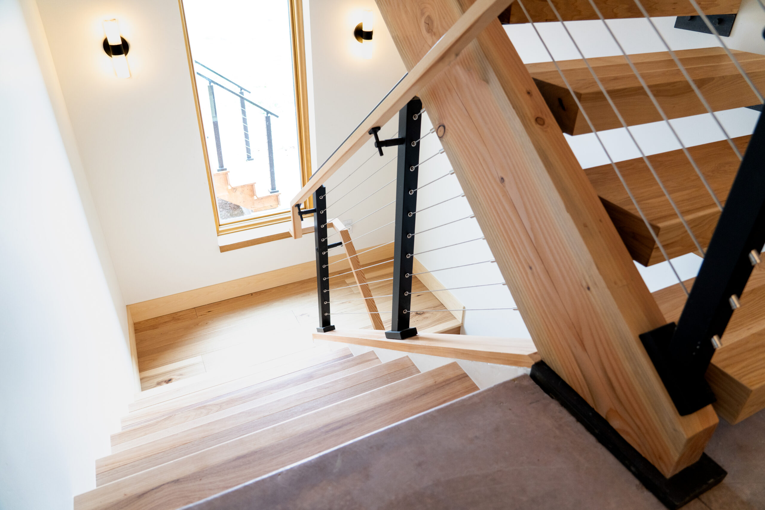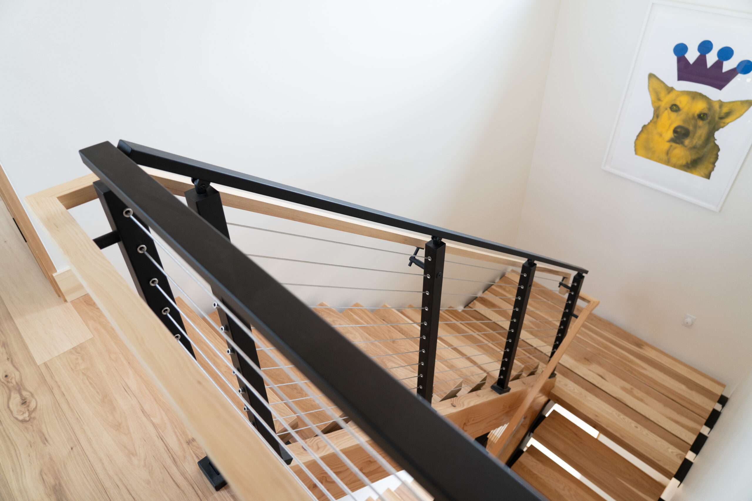 This customer opted to build their own custom staircase, then work with us for a custom railing with custom, miter-cut handrail to match. The result is a bright and natural transitional space in the home.