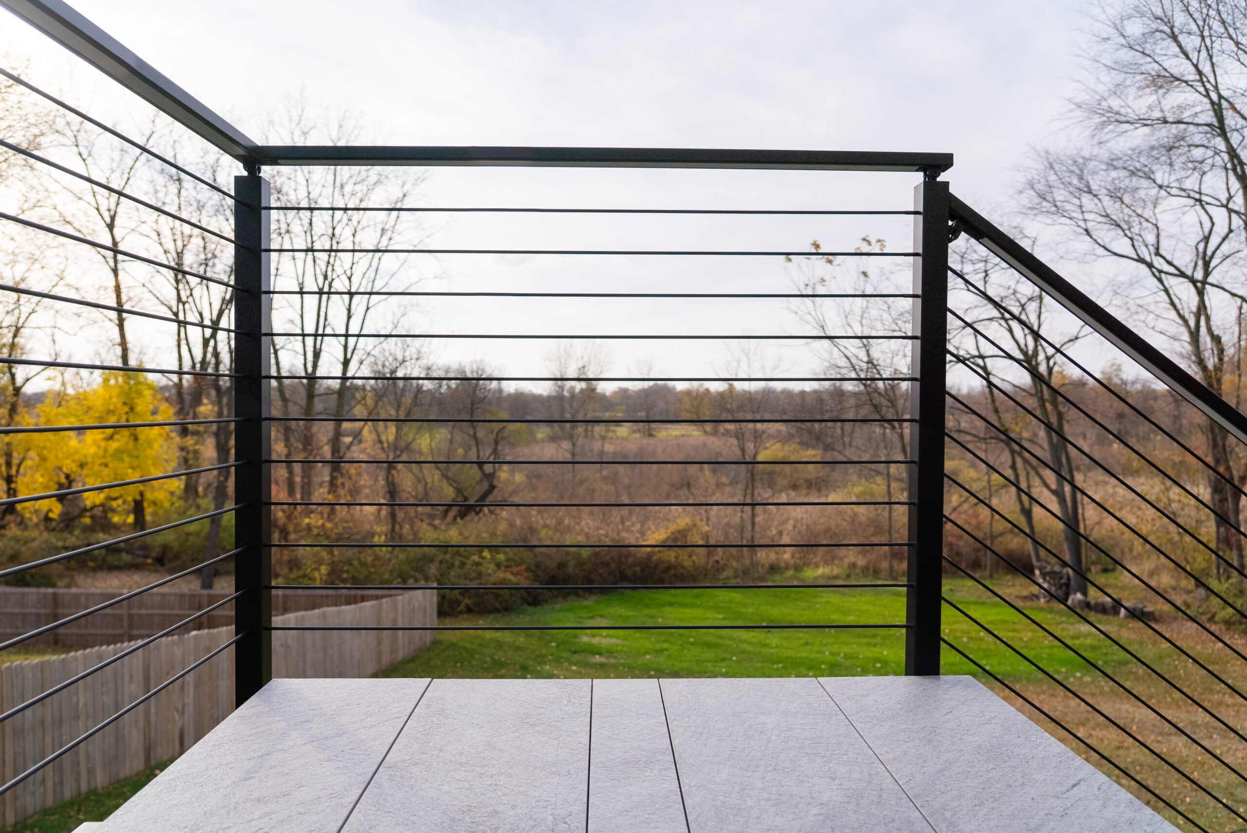 Update your elevated deck with a sleek cable railing system and FLIGHT Mono with porcelain treads. These treads offer a low-maintenance, high-durability solution that elevates outdoor spaces with style and resilience.