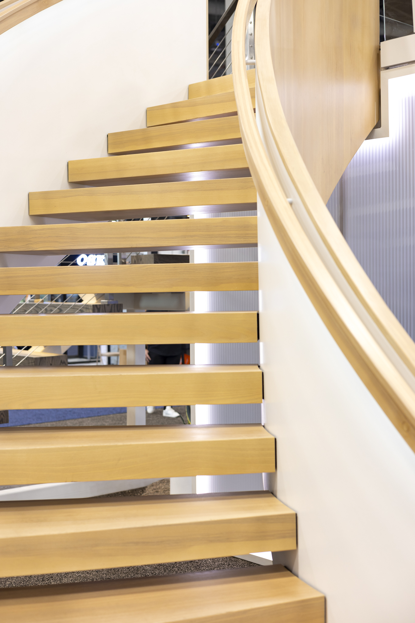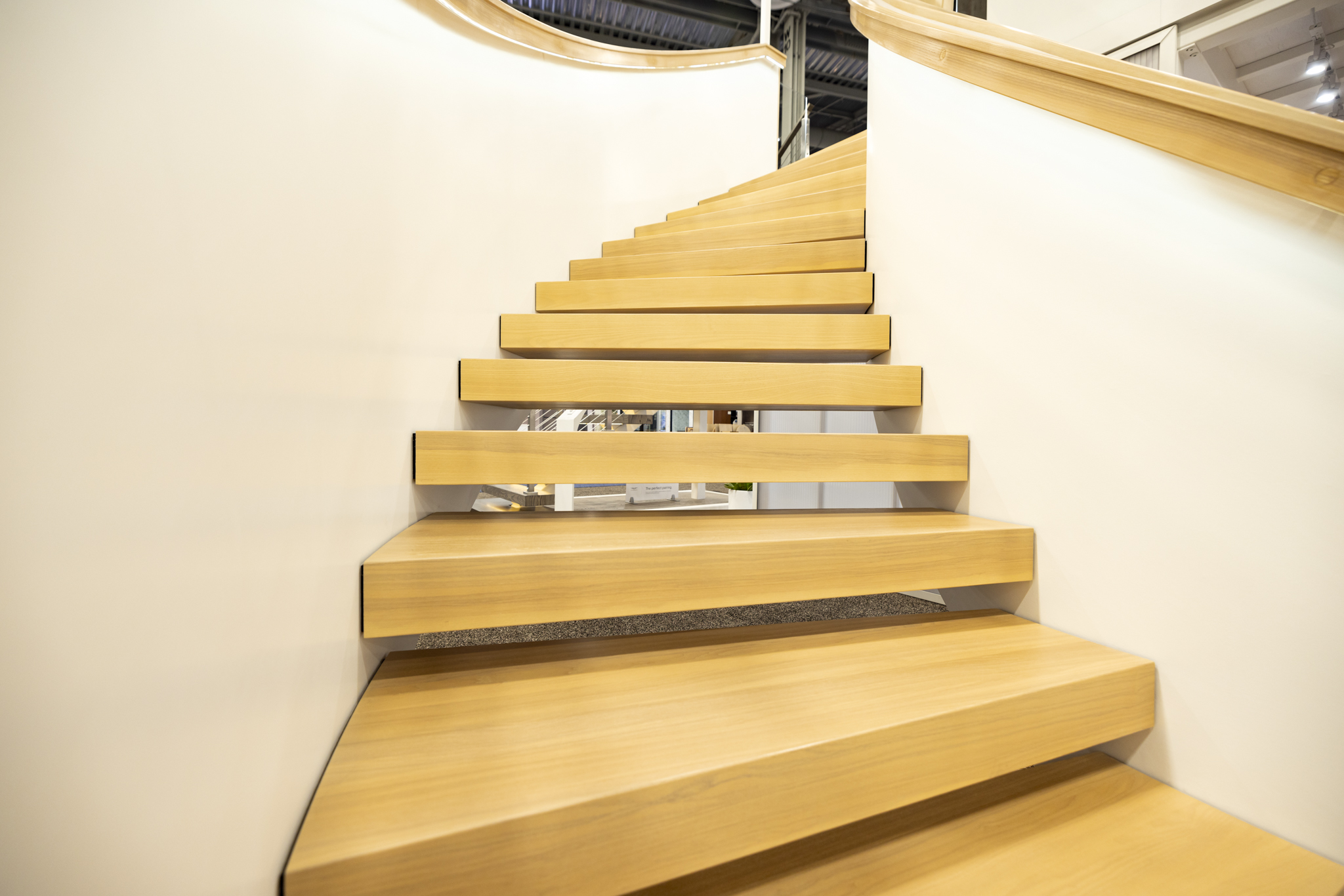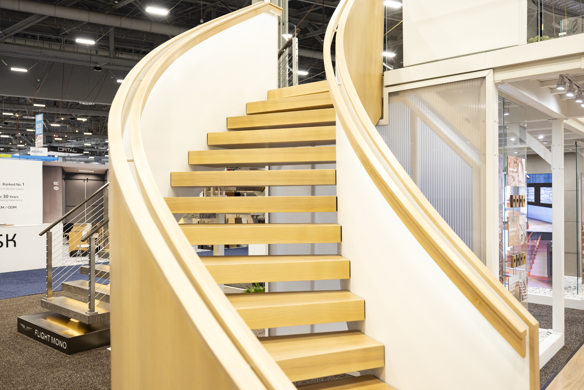 Designed to capture anyone’s attention, this FLIGHT Curve system was the star of the show at the 2024 International Builders Show. Featuring LED Ash wood treads, matching LED handrail, and side paneling, this system is sure to engineered to inspire.