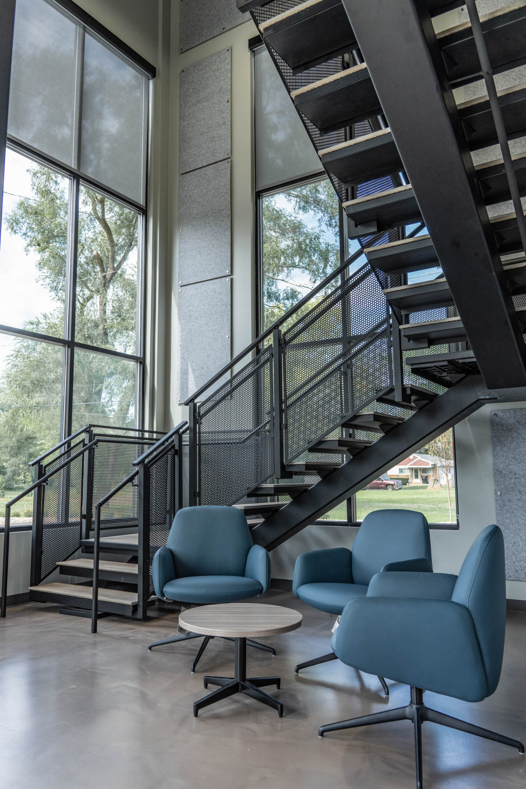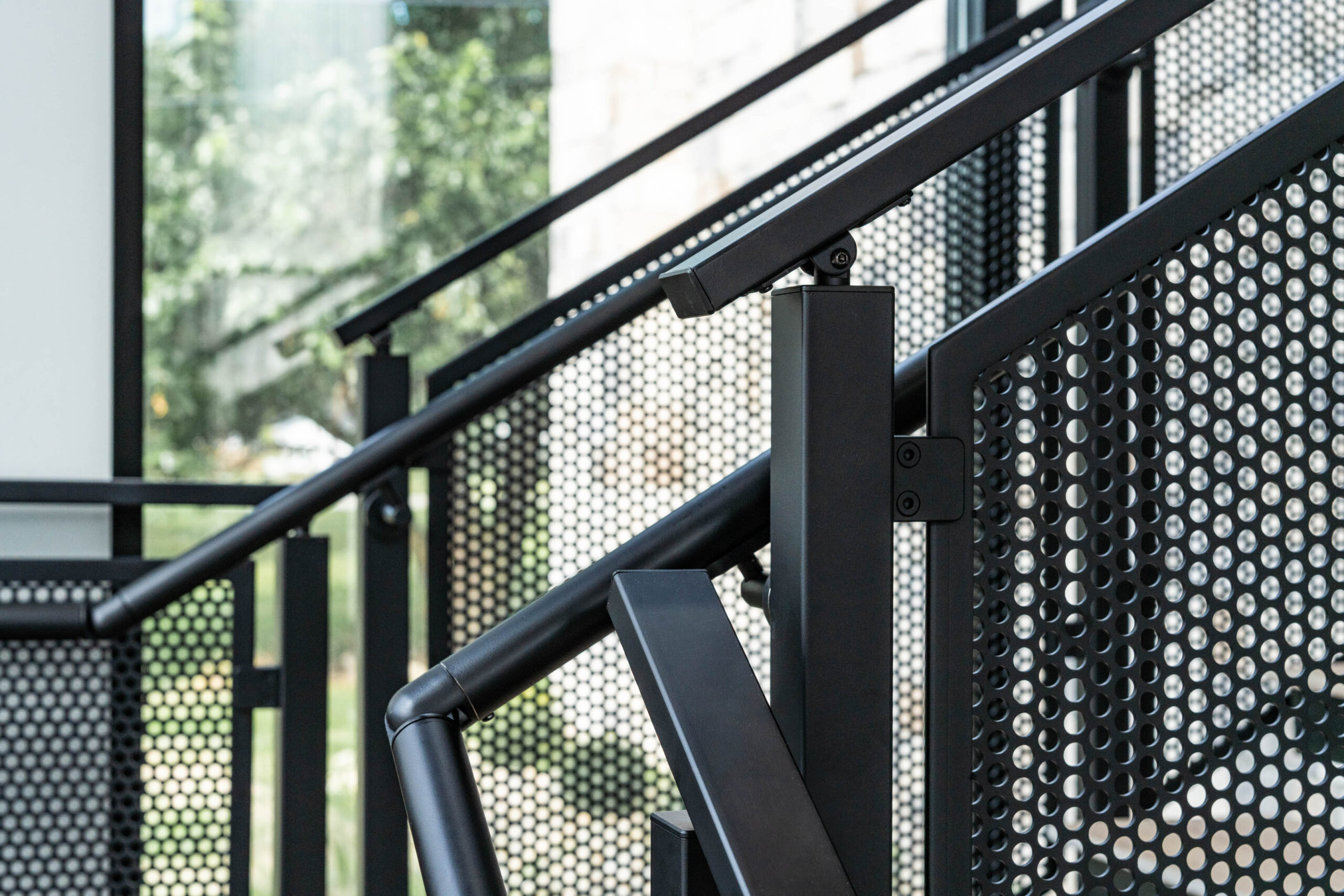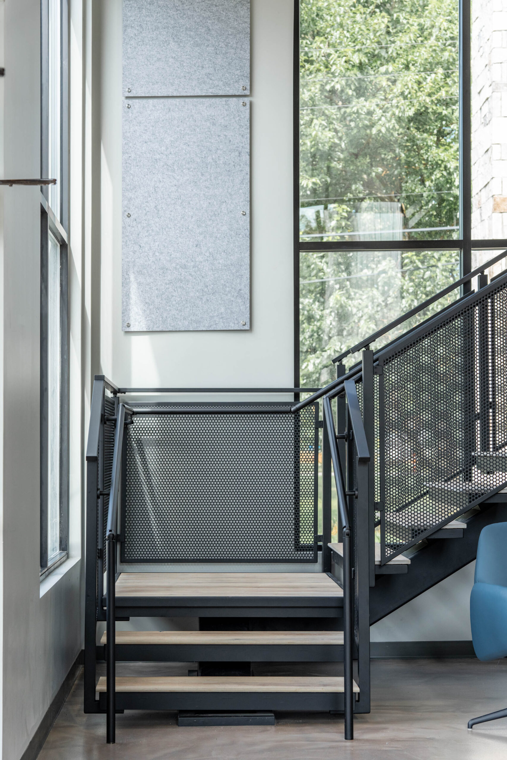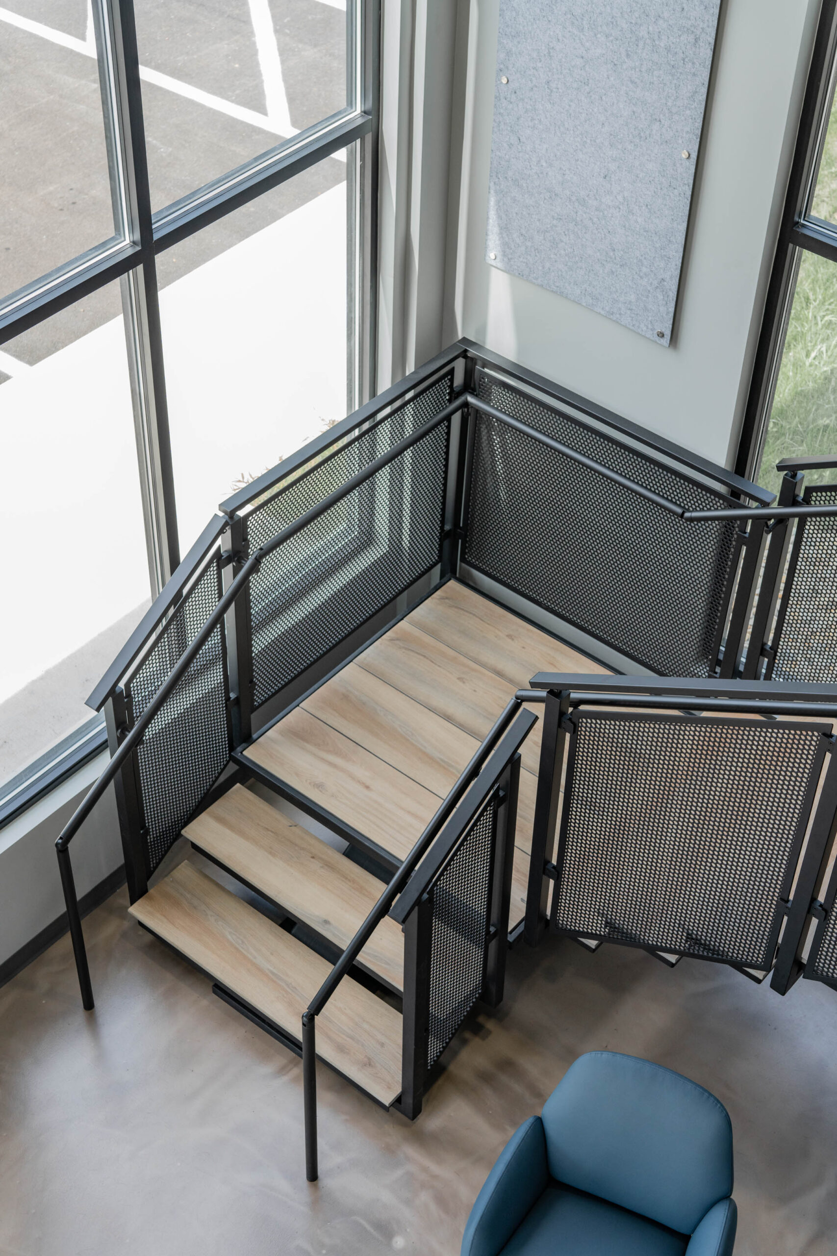 High-traffic spaces call for highly durable materials. We partnered with a local organization that serves youth and young adults to finish their new building with a FLIGHT Mono floating stair system featuring tough, porcelain treads and perforated panel railing.