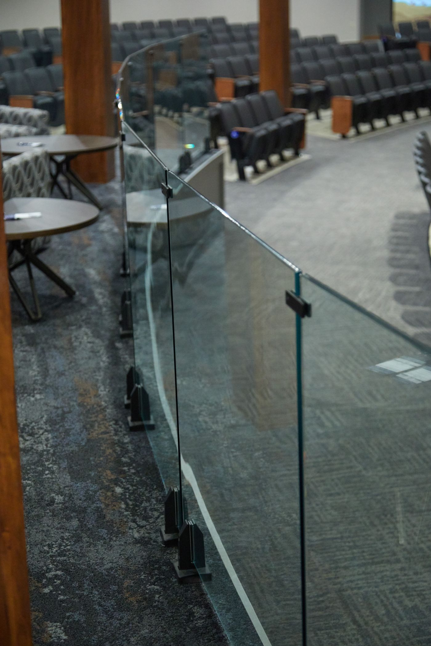 This church in Fort Wayne, Indiana needed a guardrail that would separate their cafe section from the rest of the congregation. But they did not want to block the view of the pastor and worship team. Glass railing was the perfect solution. Sturdy glass panels keep kids and adults safe and allow a great view of the front of the church. It was simple to install the railing with glass spigots.
