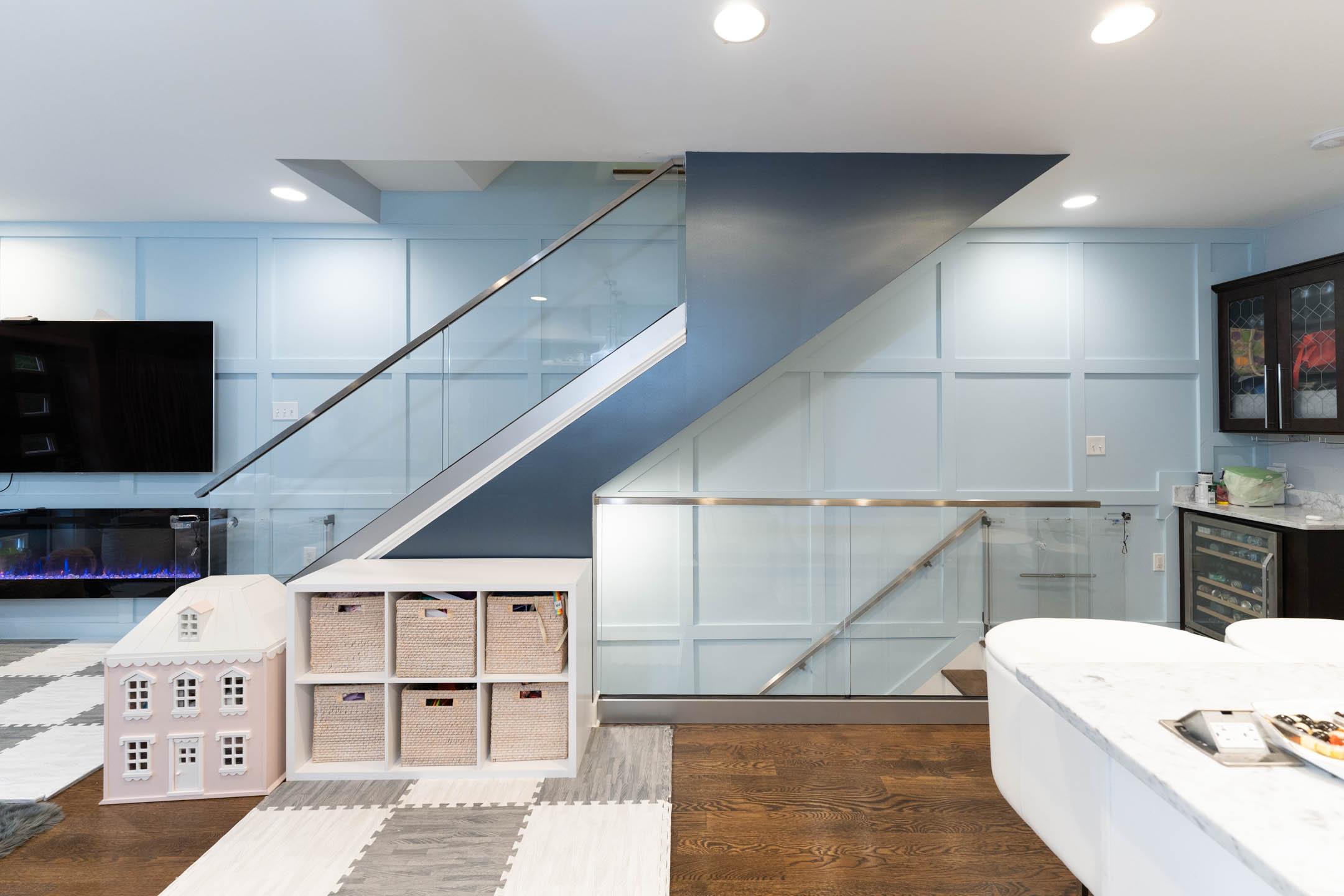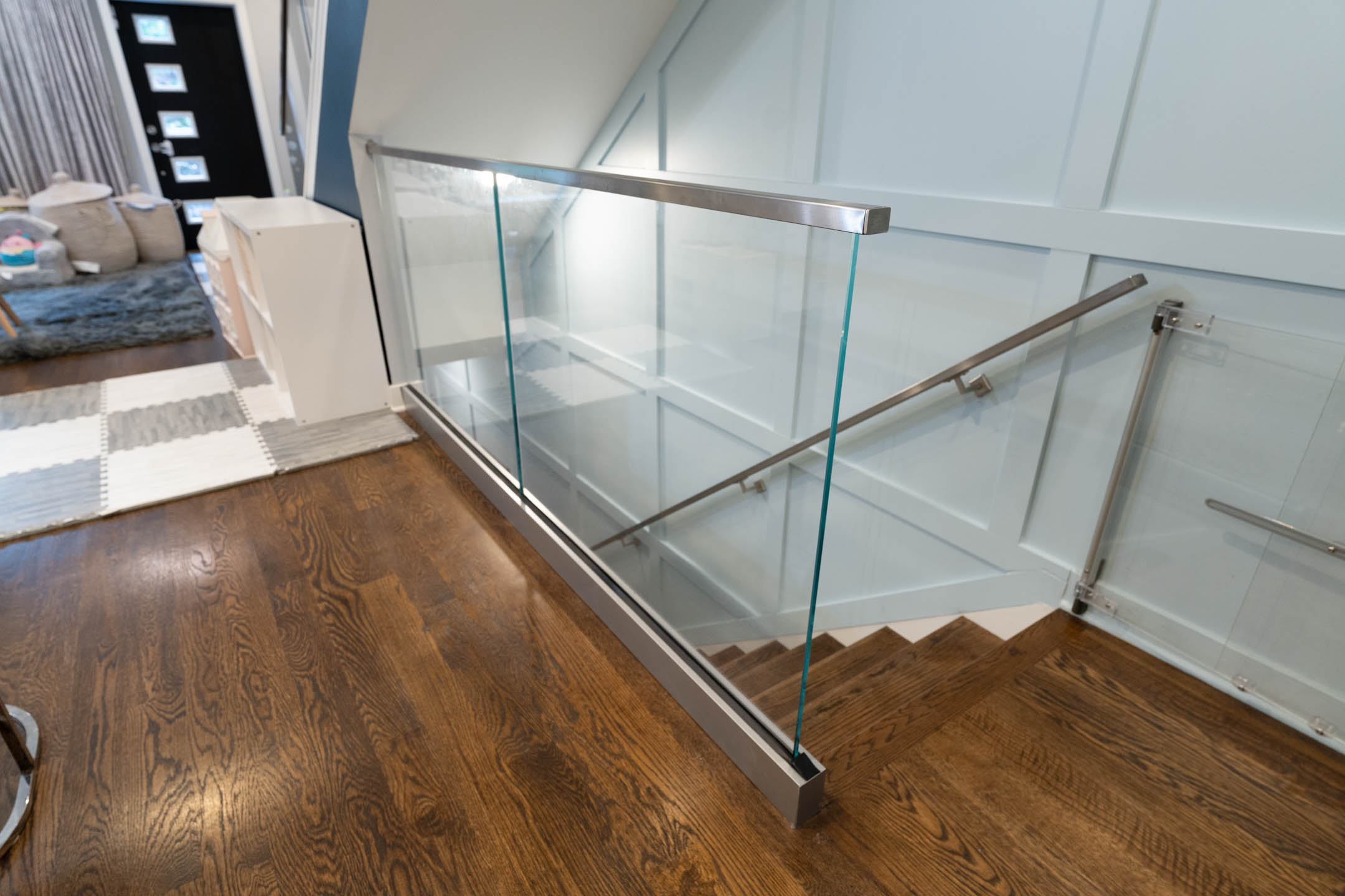 A system that works both inside and out, this glass railing displays gorgeous views from every angle.