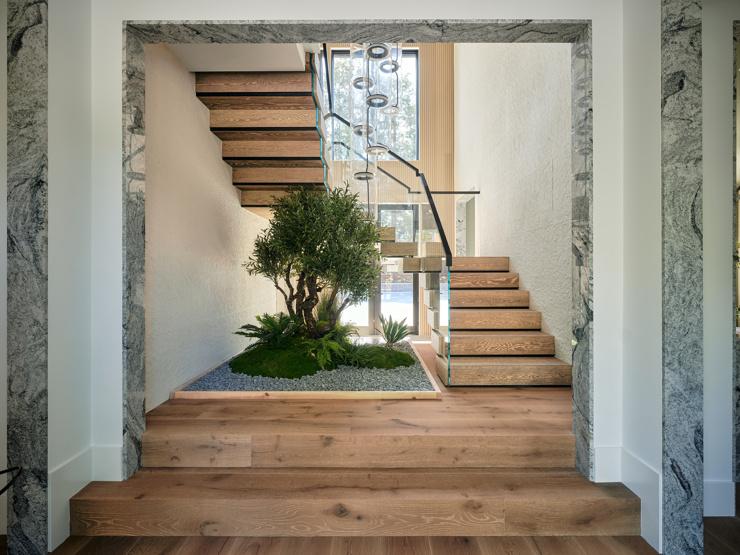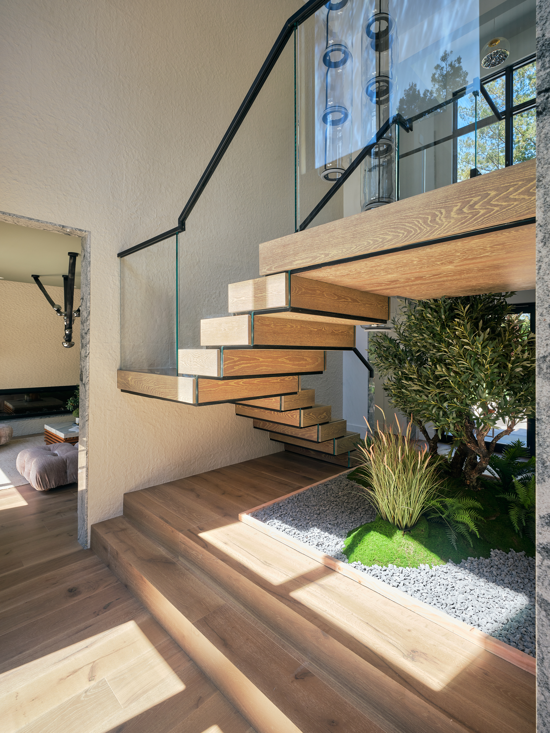 Luxurious and Natural FLIGHT Stack with Glass Railing